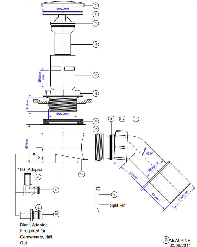 Duschwannensiphon mit Restwasser-Zulauf – Bauhöhe 67 mm