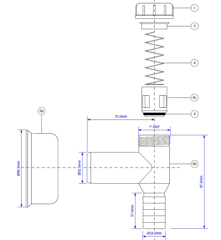 Kompakt Waschmaschinen Siphon mit Kugelsperre, DN32